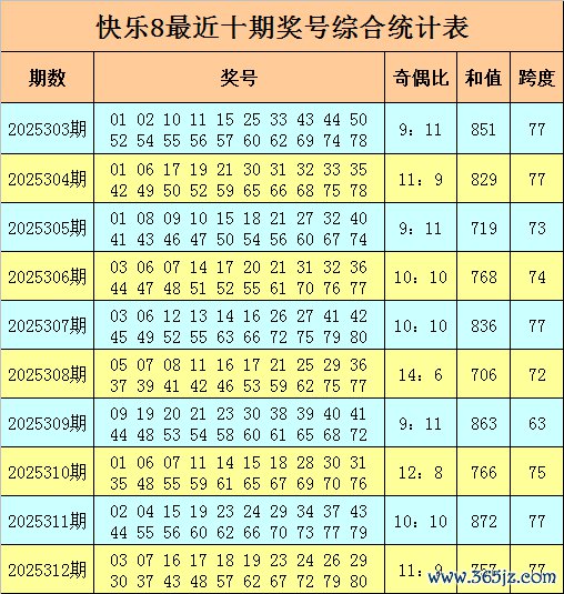福彩容许8第2025312期开奖转头奖号:03 07 16 17 18 19 23 24 26 29 30 37 43 48 57 62 67 72 79 80,其中奖号奇偶比为11:9,和值为757,跨度为77。