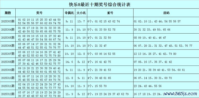 福彩高兴8第2025312期开出奖号:03 07 16 17 18 19 23 24 26 29 30 37 43 48 57 62 67 72 79 80,其中奖号奇偶比为11:9,大小比为8:12,包含8个重号19、23、24、29、37、43、62、79,包含连码16 17 18 19、23 24、29 30、79 80。
